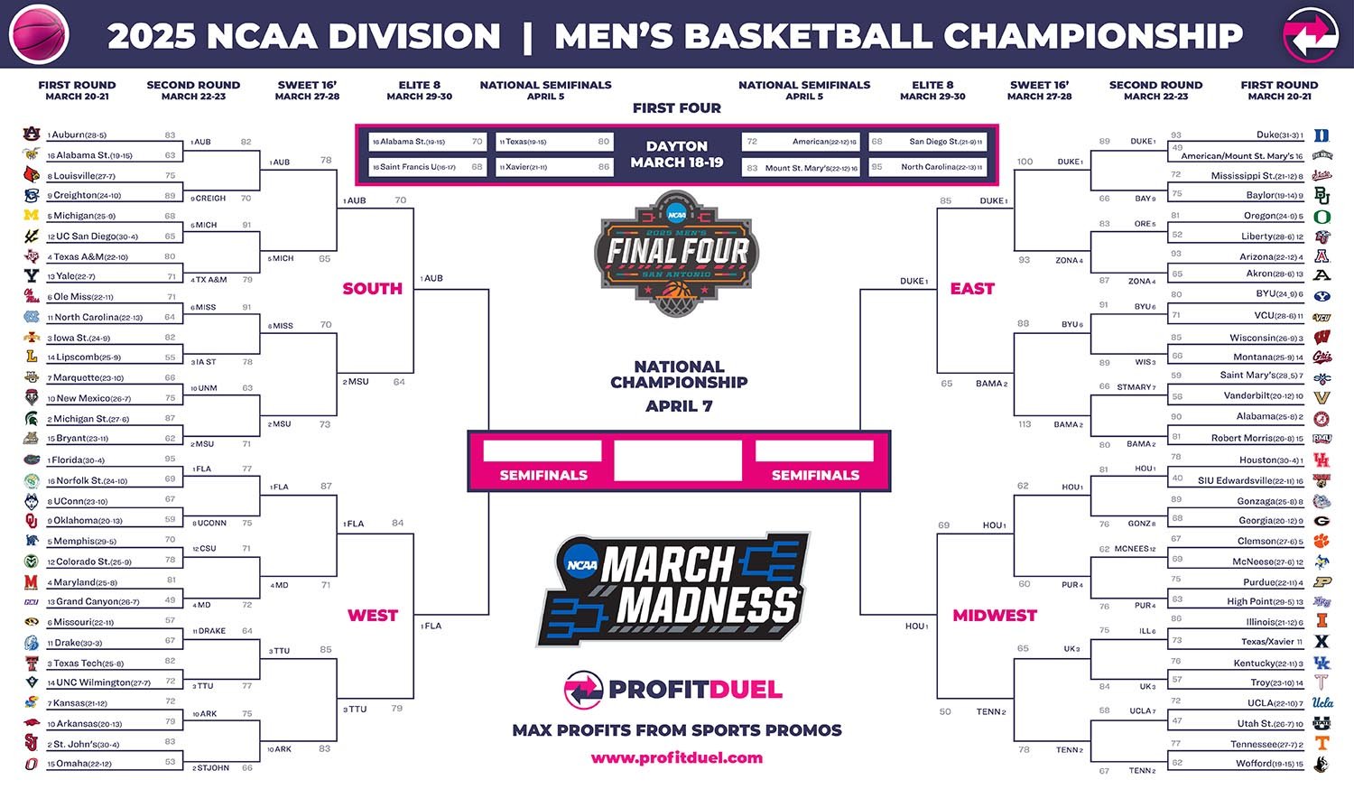 As the NCAA Men’s Basketball Tournament unfolds, our Updated March Madness Bracket keeps you in sync with every twist and turn. With teams advancing and upsets occurring, we refresh the bracket after each round so you can effortlessly track your picks and follow the action.