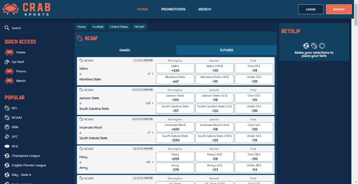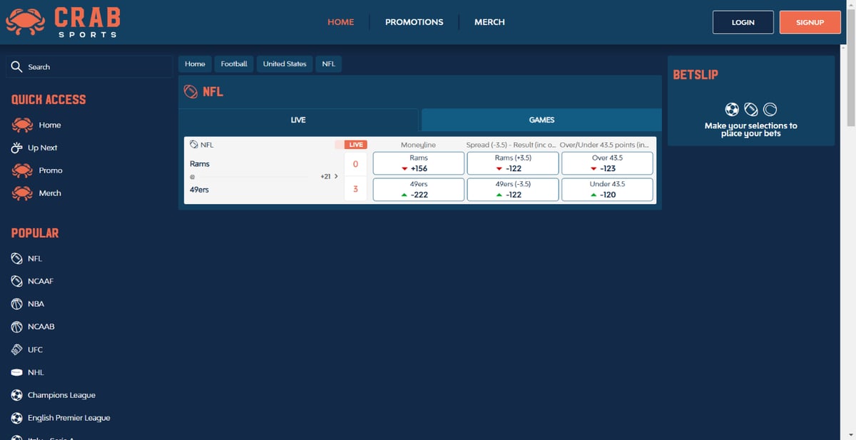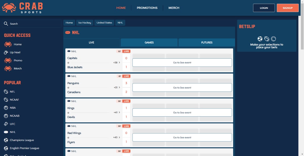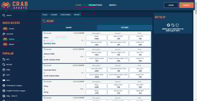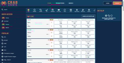 Crab Sports sticks with the big, popular sports and leagues, so you won’t feel overwhelmed by options. Here’s what you can expect:
