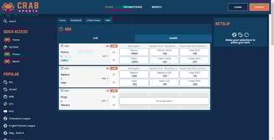 - Visit Crab Sports Website/App: