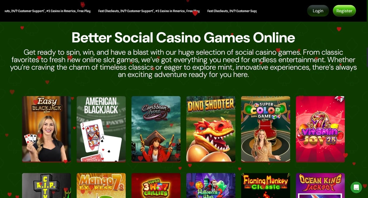 While the platform is relatively new compared with some major sweepstakes casinos, its layout and game discovery features are competitive with many established social casino platforms.