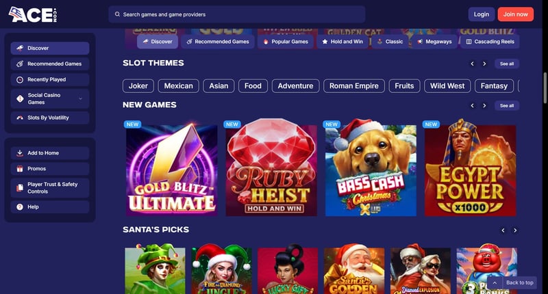 🎮 What types of games does Ace Casino offer?