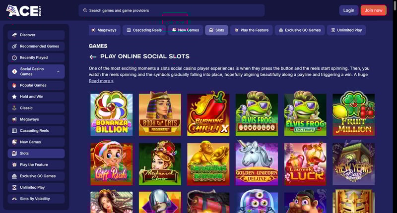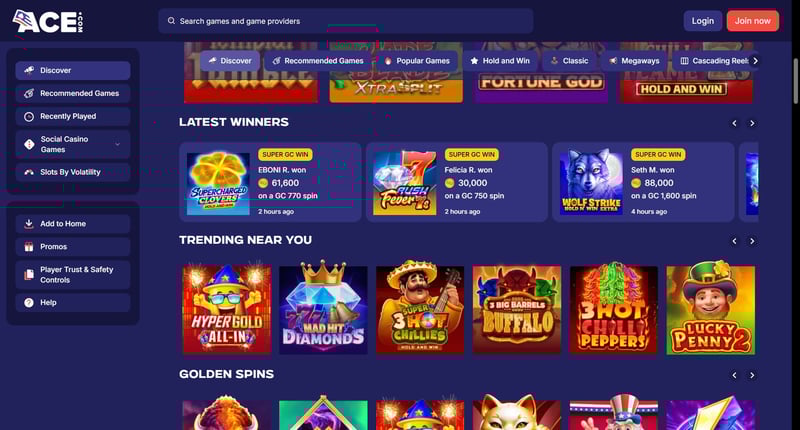 Ace Casino is a growing sweepstake-style online casino available to most US players, offering social play, sweep coins, and a mix of slots-style and casual games.