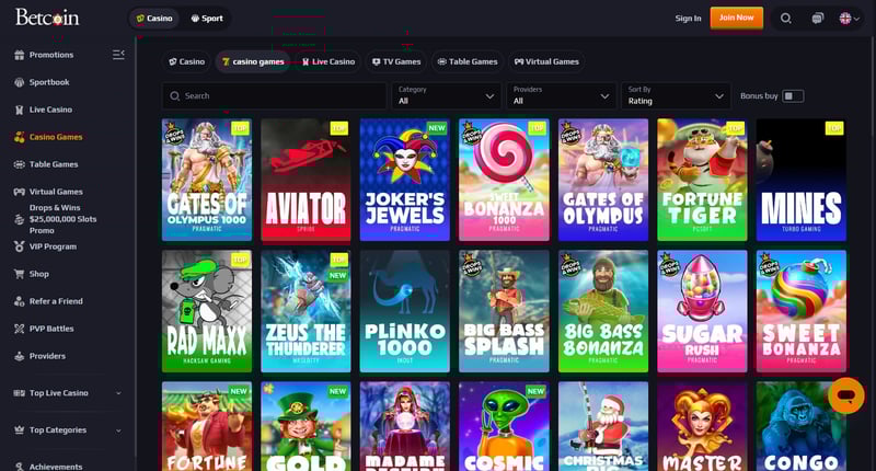 Betcoin.social offers one of the most diverse game libraries among sweepstakes casinos, going beyond slots to include table games, poker, and arcade-style experiences.