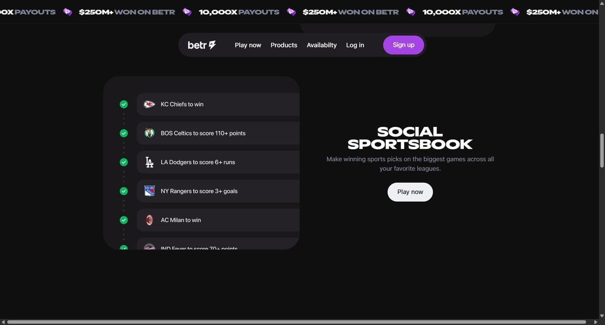Betr Casino offers a streamlined sweepstakes experience built around simplicity rather than large catalogs. Bettors who prefer quick, easy-to-understand games will appreciate the platform’s design, though players wanting deep variety might find the selection limited compared to top sweepstake casinos.