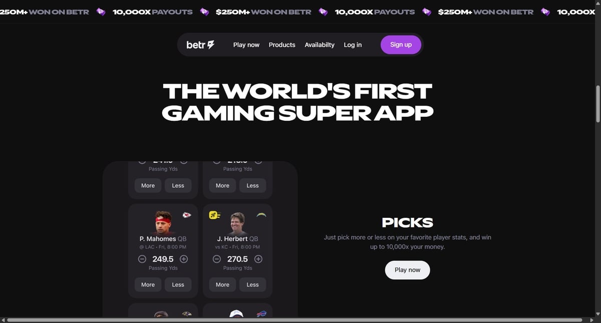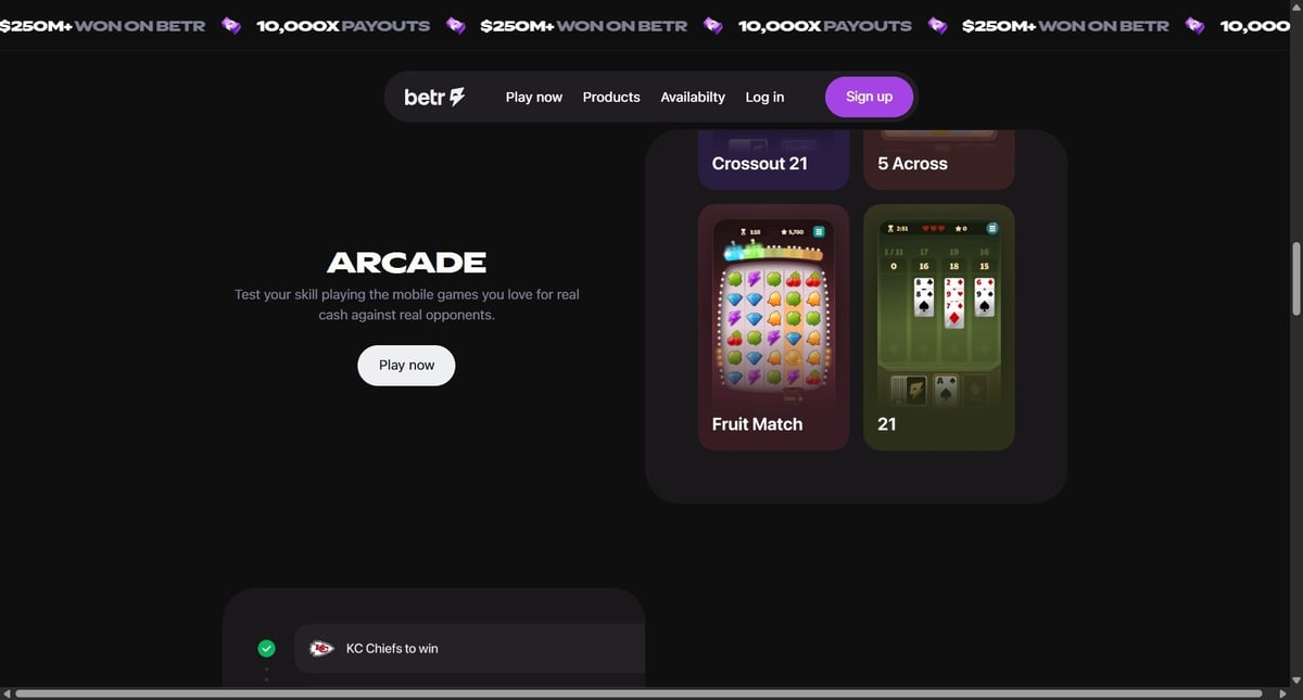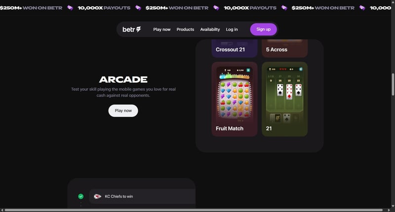 Betr provides slot-style games, instant win games, arcade mini-games, and sports-themed picks. The catalog is smaller than major sweepstake casinos, but it’s designed for easy, quick, and mobile-friendly gameplay with simple mechanics.