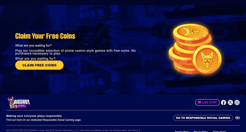 Big Shot Games Casino positions itself squarely in the modern sweepstakes space — high game volume, frequent promotional drops, and a structure that mirrors real-money casinos without technically operating as one.