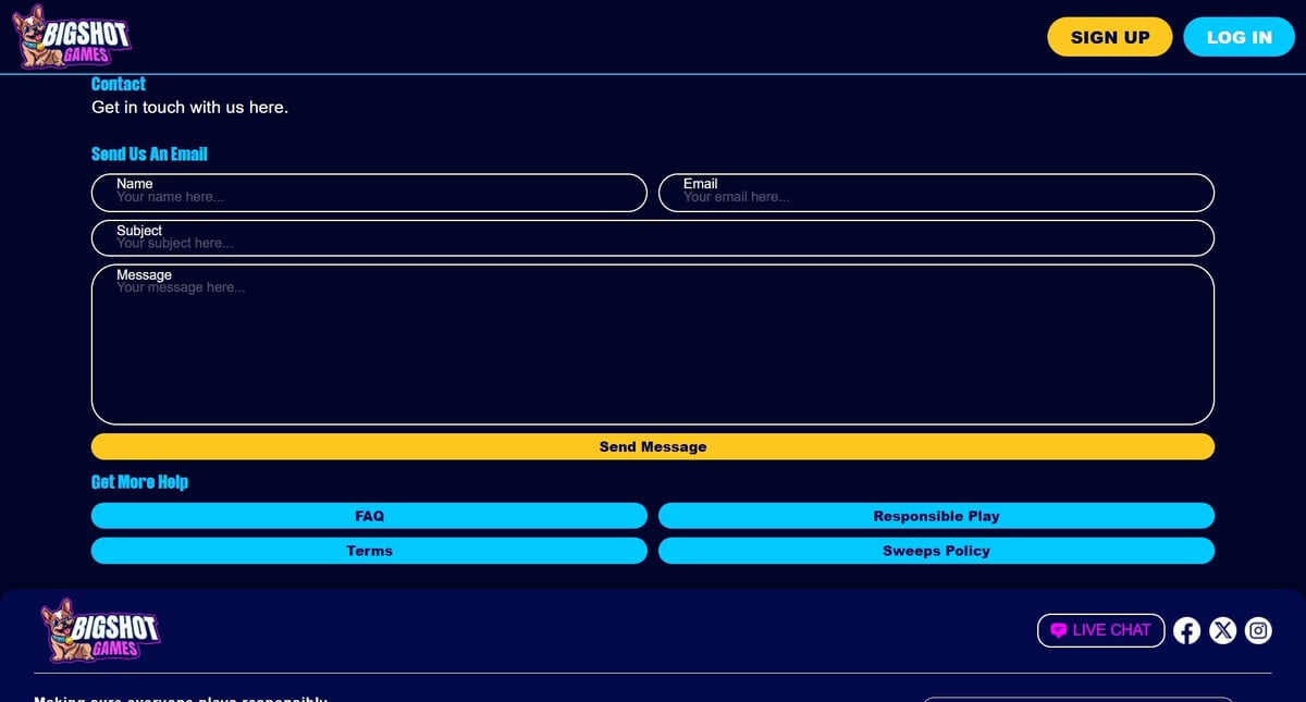 Signing up at Big Shot Games Casino is similar to most US sweepstakes casinos and typically takes only a few minutes.