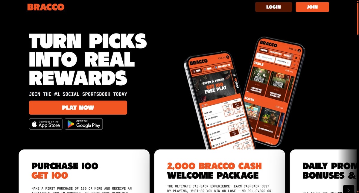 Bracco’s strength is its blended casino-plus-sportsbook model, which sets it apart from many pure sweepstakes casino brands.