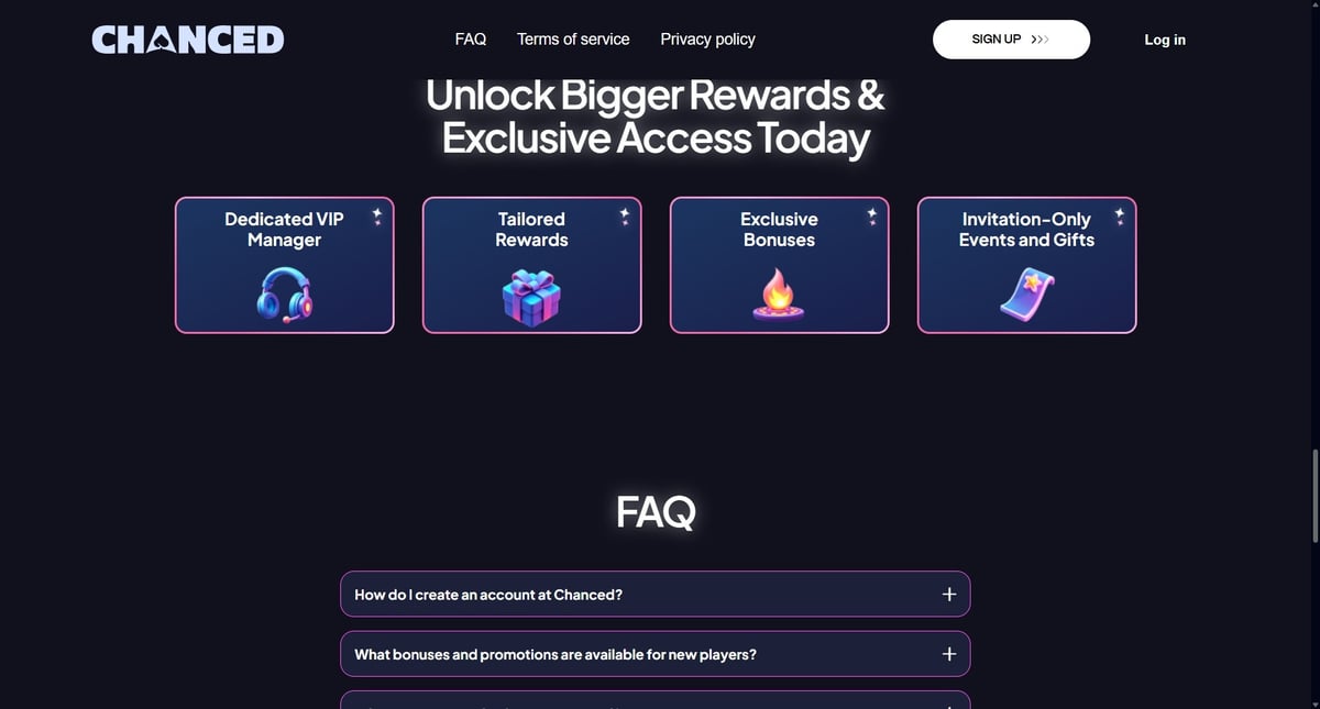 Chanced Casino delivers a clean, modern user experience that works smoothly across desktop and mobile browsers. Navigation is intuitive, games load quickly, and key account features like balances and rewards are easy to access.