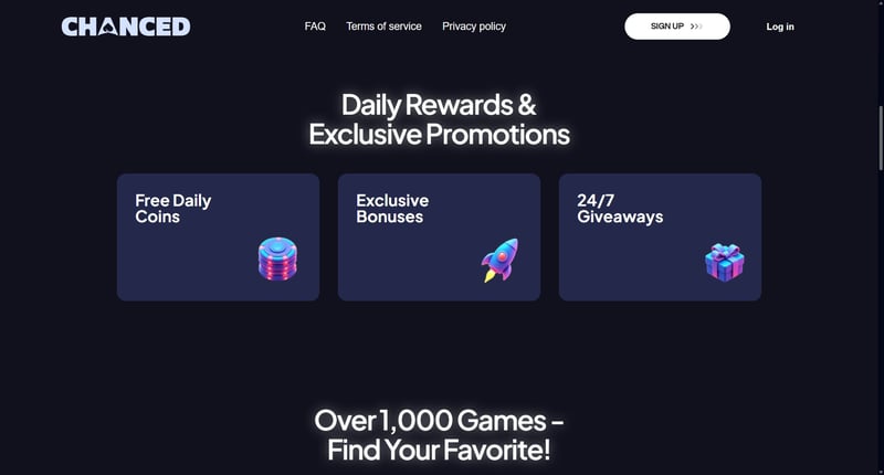 Chanced’s system mirrors other leading sweepstakes casinos by separating entertainment play from prize eligibility, reducing friction for new users.