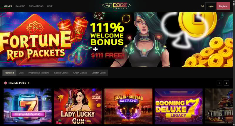 Decode Casino is a relatively new online sweepstake casino platform launched in 2024, designed with a futuristic, cyberpunk-style interface and a large library of casino games. The platform offers thousands of slots, table games, and specialty titles from multiple providers, making it appealing to players who want variety and immersive gameplay.