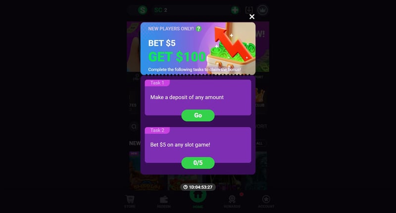 New players typically receive complimentary Gold Coins and a small amount of Sweepstakes Coins upon registration.