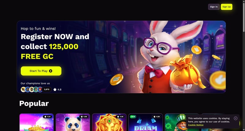 Launched in 2024, Jackpot Rabbit is a fast-growing sweepstakes casino known for its large slot library, generous bonuses, and dual-currency system (Game Coins and Super Coins).