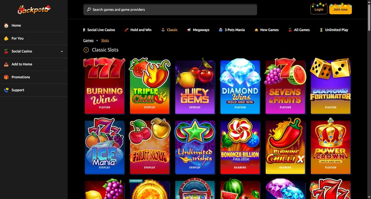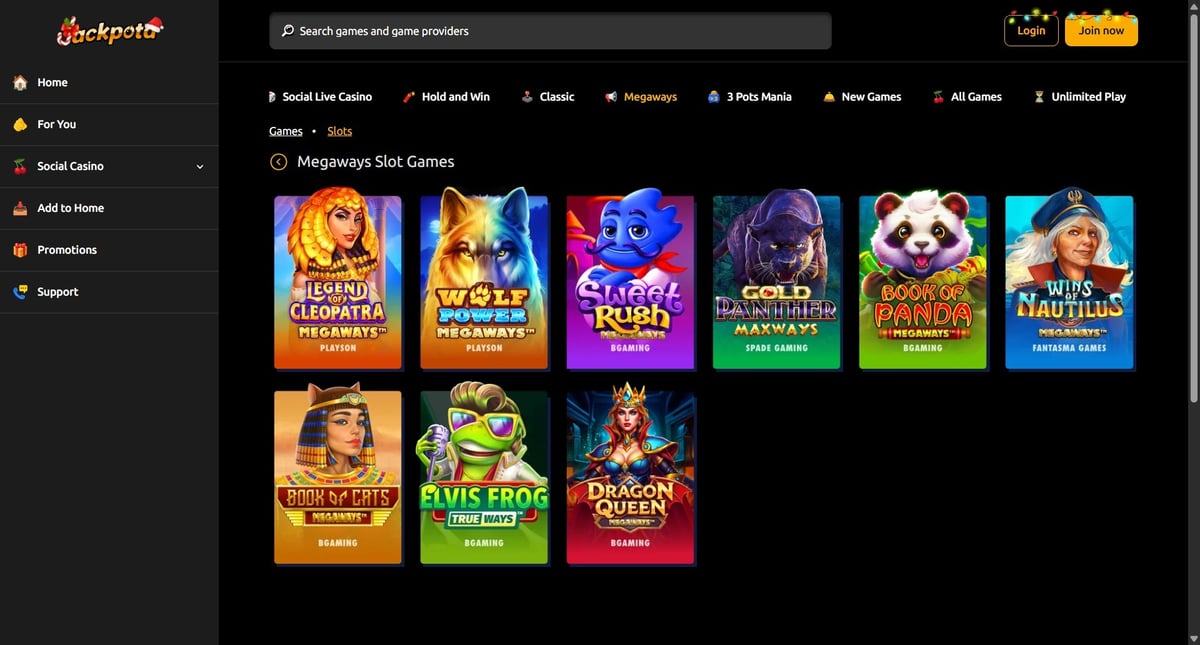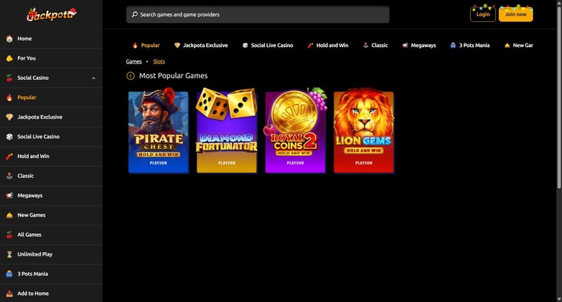 Jackpota Casino’s website is clean, modern, and easy to navigate. The layout prioritizes gameplay access, daily rewards, and promotions without overwhelming users.