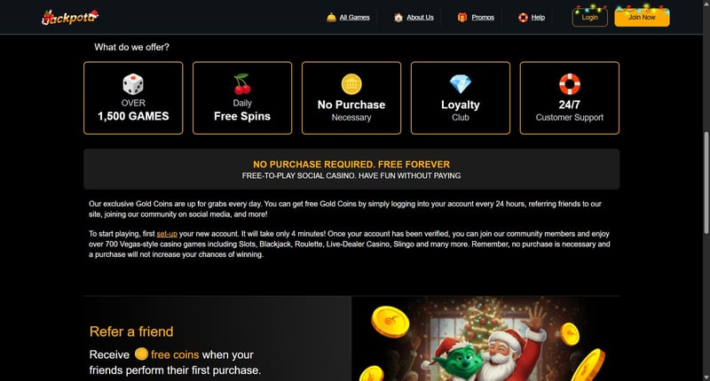 Jackpota Casino stands out for its clean design and straightforward sweepstakes mechanics. While it won’t appeal to high-stakes gamblers, it’s clearly built for casual US players who want entertainment with the option to redeem prizes without navigating complex gambling laws.