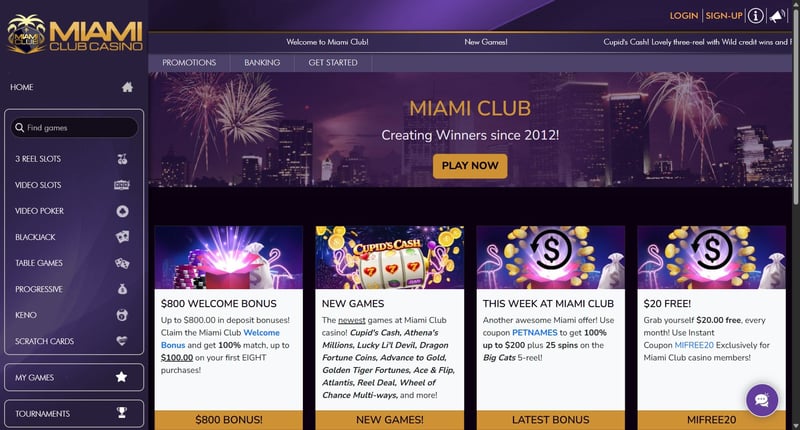 Miami Club Casino offers a welcome bonus for new players.