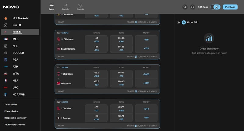 Novig focuses on major U.S. leagues like the NFL, NBA, MLB, NHL, NCAA, WNBA, and more. Itβs built around sports predictions rather than slots or table games, making it unique among sweepstakes casinos.