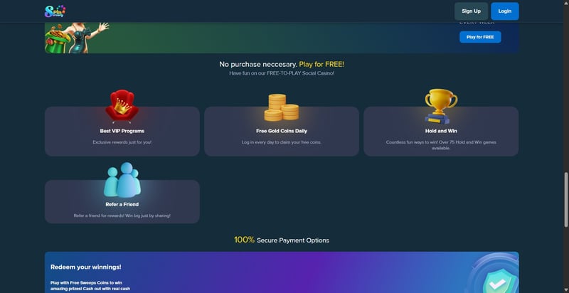 Spinsorcery offers a rewards structure consistent with common sweepstakes casinos, giving players multiple pathways to earn redeemable Sorcery Coins.