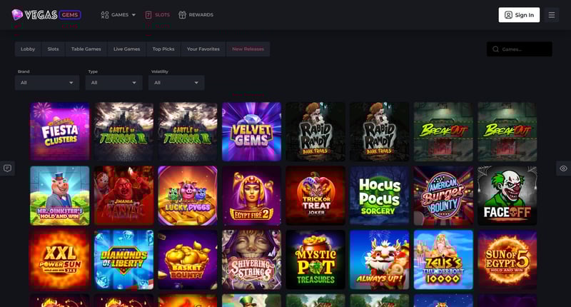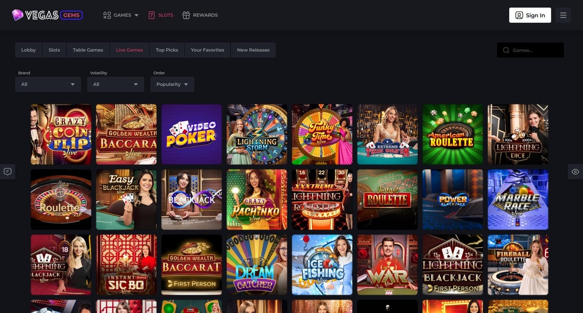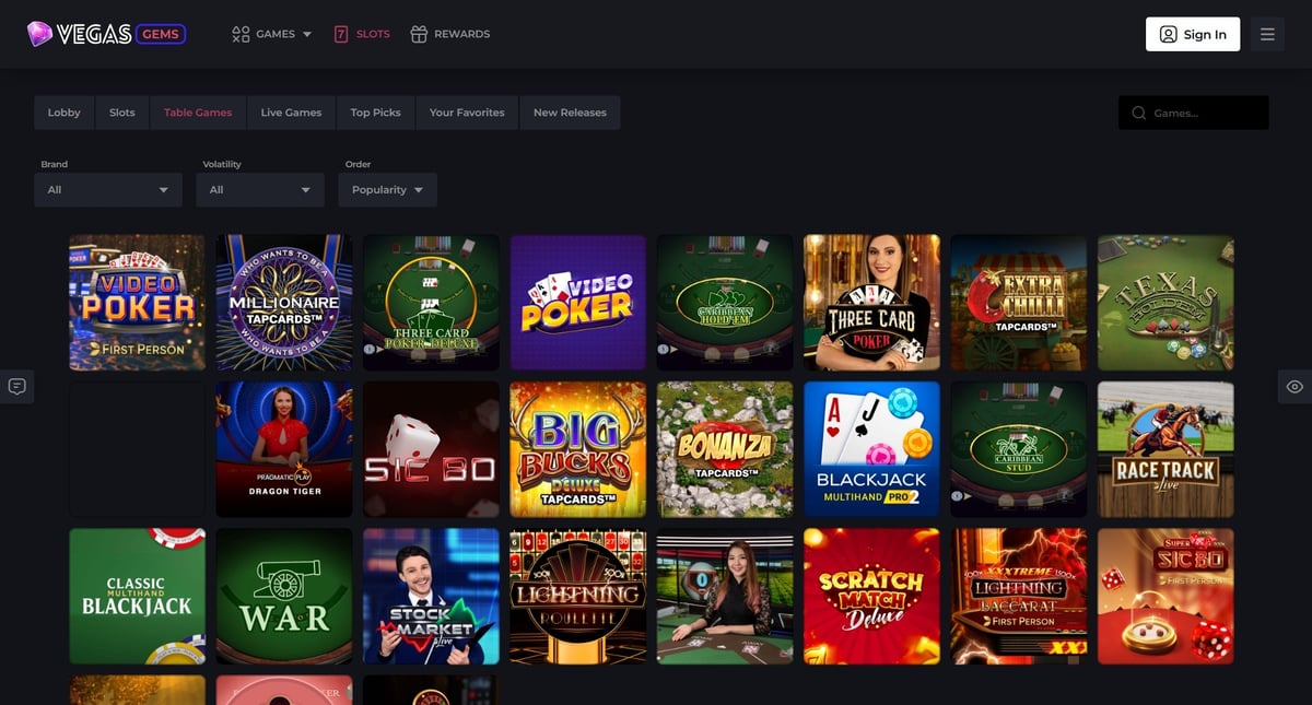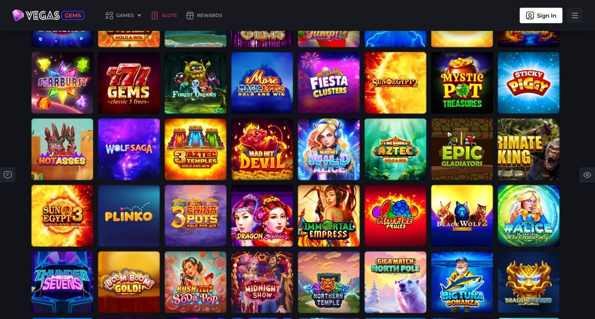 π§© What types of games does Vegas Gems offer?