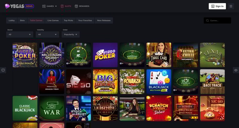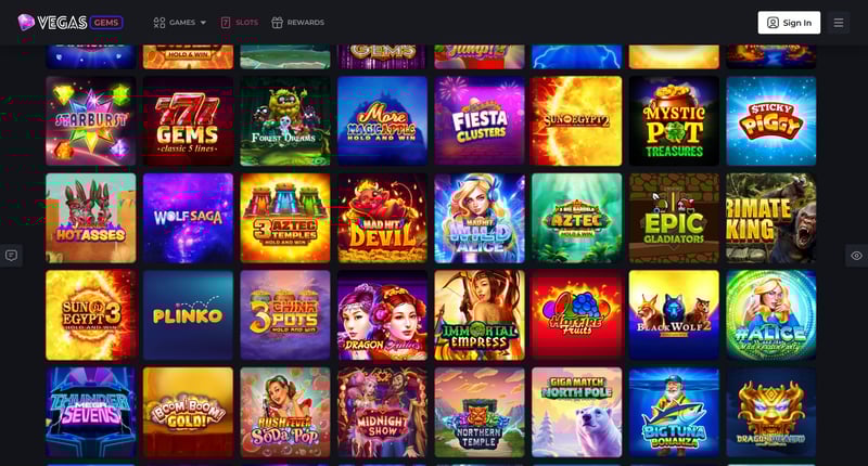 Vegas Gems focuses on casual slots, scratchers, instant-win games, and jackpot-style titles. The library is smaller than other sweepstake casinos but is intentionally curated for fast gameplay, easy rules, and simple bonus structures appealing to casual players.