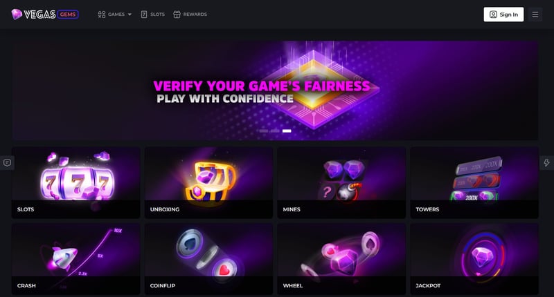 Vegas Gems Casino is a US sweepstake and social casino where you play games using Gems or Cash Gems. Gems are for fun, while Cash Gems can be redeemed for prizes after meeting playthrough requirements. No real-money wagering is required.