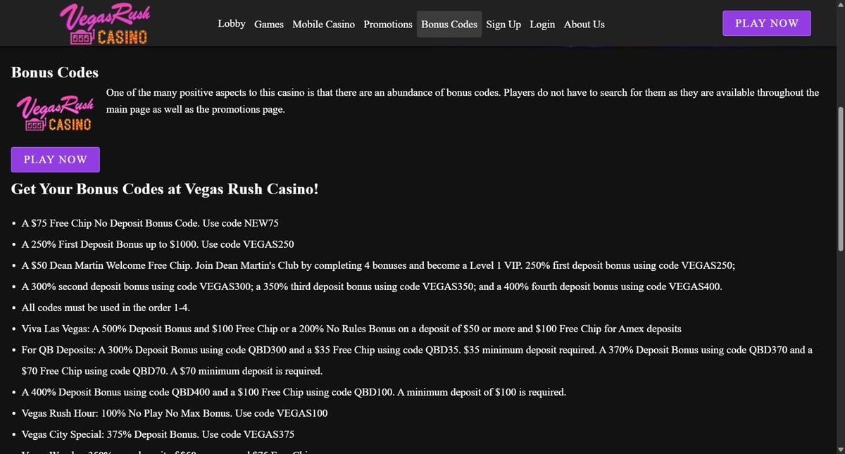 You can check the current Vegas Rush Casino welcome bonus at the top of this page or by clicking here. Promotions change often, so always review the latest offer before signing up.