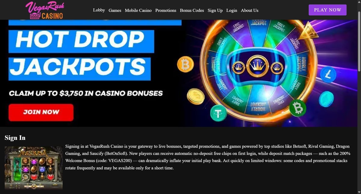 Signing up for Vegas Rush Casino is quick, simple, and takes most players less than two minutes. Here’s how to get started and begin playing: