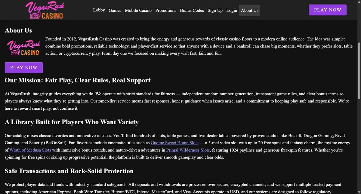 We also include expert commentary, data-backed insights, and comparisons to help ensure you get the full picture of what Vegas Rush Casino offers.