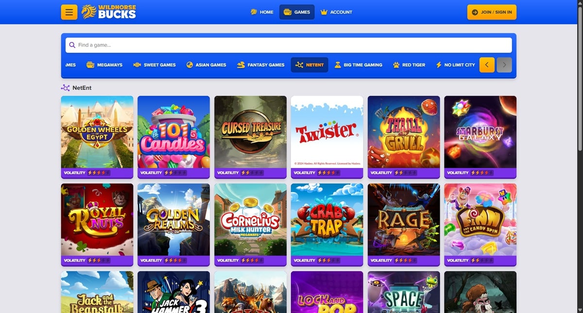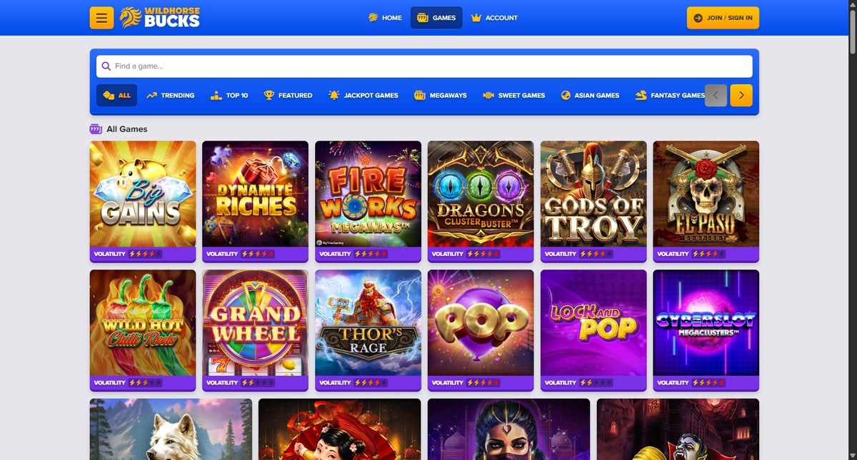 Below is an expanded look at the most popular and engaging games available at Wildhorse Bucks. These rankings are based on gameplay appeal, accessibility, and what similar sweepstake casinos typically highlight for players.