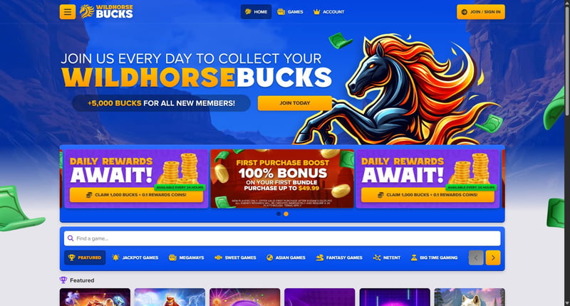 Wildhorse Bucks positions itself similarly to other fast-growing sweepstake platforms by focusing on easy gameplay and straightforward coin systems. The overall experience targets players who want casual entertainment but also appreciate the option to redeem winnings through sweep coins.