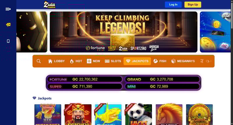 To view Zula's current welcome bonus, check the top of this page or click here. They often offer free Gold Coins and Sweeps Coins upon account creation, giving players a risk-free way to explore the platform and try games.